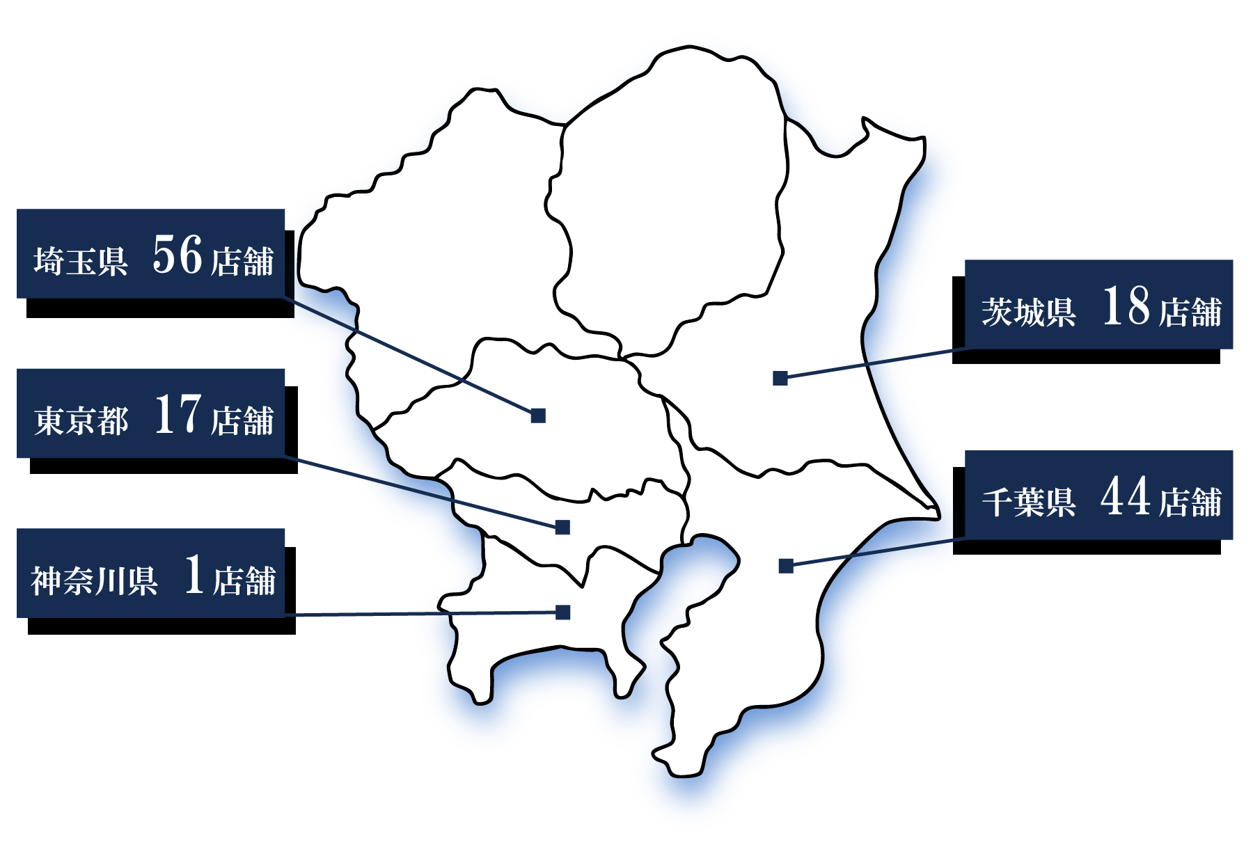 千葉・茨城のロードサイドを中心に約40店舗を展開するメガネハット。 このエリアでトップクラスの店舗数は、長く地域でご支持をいただいている証でもあります。のんびりとした郊外に現れる、西洋の神殿を思わせる高級感ある「パルテノン型」の店舗では、お客様のためにのびのびと真心こめた接客をするスタッフが、ご来店をお待ちしています。